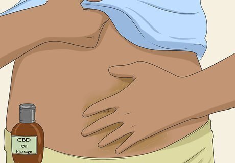 Apply topical CBD oil if you don't want to eat or inhale it. CBD oil also comes in a form that you can rub onto your skin, which may be helpful for localized pain. For example, you could rub topical CBD oil over your abdomen if you’re experiencing abdominal pain. Applying CBD oil topically may provide 4 to 6 hours of pain relief. Be aware that it’s harder to get a precise dose if you rub it onto your skin instead of taking it orally or smoking it.