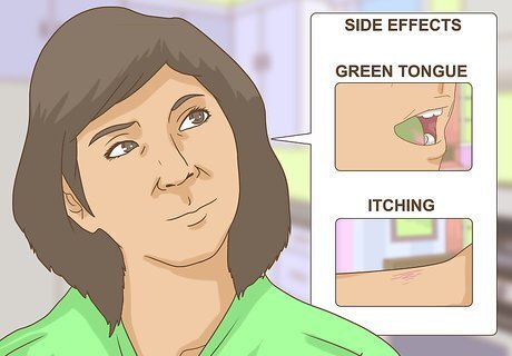 Recognize side effects of chlorophyll supplementation. Taking the supplement orally may give you a green tongue or green feces. If you apply it topically to treat a wound, it may lead to a mild burning sensation or itching. If you take a lot of the supplement and in unusual situations, rare side effects include diarrhea and abdominal cramps. Seek a doctor if you experience rare side effects.