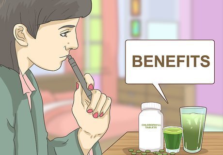 Recognize the benefits of chlorophyll. Chlorophyll is a class of pigments that allows plants to absorb energy from the sun through photosynthesis. It is present in any plant that uses photosynthesis, such as algae, wheatgrass, broccoli, and many other vegetables. The health benefits of supplementing your diet with chlorophyll have been explored in relation to weight loss, cancer, wound healing and other conditions. Some of the health benefits of chlorophyll include: Chlorophyll may be useful for blocking the effects of cancer. However, more research is needed in this area. Chlorophyll from green vegetables may be useful for reducing the risk of liver cancer. Chlorophyll may also be used to increase energy, prevent altitude sickness and lose weight, although further research is needed on these purported benefits.
