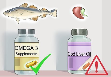 Select a safe variety of fish oil supplement. You might think that one fish oil supplement is like any other, but you'd be wrong. In fact, you can find two kinds of fish oil supplements: those derived from the fish's body, and those from the fish's liver. The former—often called omega-3 supplements—is thought to be safe to consume during pregnancy, while the latter—due to the presence of retinol—is not. The oil's source will be listed on the label, so just read the label and contents to make sure it's not liver oil. That being said, you should always consult your OB/GYN before taking any supplement, especially if you are breastfeeding.