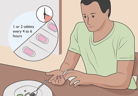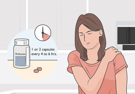 Relieve aching muscles and joints with ibuprofen. Ibuprofen (Advil, Motrin) is a nonsteroidal anti-inflammatory drug, meaning it will help ease strained or swollen muscles and joints. It can help with headaches, toothaches, menstrual cramps, back pain, rib muscle strain, minor injuries, and arthritis. Swallow 1 or 2 capsules (200 to 400 mg) with 8 fl oz (240 mL) of water and food every 4 to 6 hours. Ibuprofen may increase your risk of stomach ulcers, so it’s best to take it with food. Be sure to check the strength of the product and consider your weight. If you weigh less, you may only need to take 1 capsule to relieve pain. Don’t take ibuprofen in high doses or daily for longer than 1 week because it can increase your risk of a heart attack or stroke. The maximum daily dose is 2,400 mg per day. Pregnant women and children under 2 years of age shouldn’t take ibuprofen. Talk to your doctor before giving ibuprofen to a child over 2 years old to determine the appropriate dosage. Tip: If you have heart disease or are at risk, talk to your doctor about using naproxen (Aleve) as an alternative to ibuprofen.