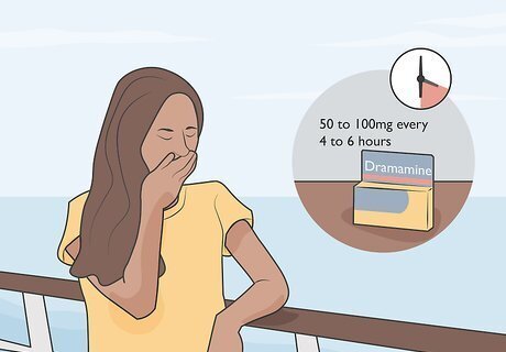 Take dimenhydrinate to treat motion sickness. Dimenhydrinate (Dramamine) can ease motion sickness or vertigo caused by flying, driving, or boating. To use immediate-release dimenhydrinate, take 50 to 100 mg every 4 to 6 hours as needed and don’t ingest more than 400 mg within 24 hours. If you’re going on a long flight and intend to take extended-release dimenhydrinate, take 100 mg 1 hour before your flight and every 8 to 12 hours after that, as needed. Avoid taking more than 300 mg daily. Children under 2 years of age and pregnant or breastfeeding women shouldn’t take dimenhydrinate. Dimenhydrinate may cause dizziness, so avoid drinking alcohol, exercising, driving, or going out in hot weather after taking it. Avoid taking dimenhydrinate if you’re already taking diphenhydramine (Benadryl), hydrocodone (Vicodin, Lortab, Norco), tramadol (Ultram), or cetirizine (Zyrtec) because mixing these drugs could cause dangerous side effects.