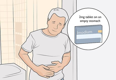 Take an anti-diarrhea medicine to prevent loose stools. Loperamide (Imodium) can reduce the number of bowel movements you have and help thicken loose stools. Chew a 2 mg tablet on an empty stomach after you use the bathroom. To take the dissolvable form, place 1 whole tablet on your tongue and let it dissolve completely before swallowing (you don’t need to flush it down with water). Do this twice a day until your symptoms subside. Don’t take more than 8 mg within 24 hours unless you’re under close supervision by your doctor. If you’re giving loperamide to a child, use a formula specifically made for children (which typically come in 1 mg or 2 mg tablets). The maximum daily dosage for a 2 to 5-year-old is 3 mg. For 6 to 8-year-olds, administer no more than 4 mg per day. Children ages 8 to 12 years old can take up to 6 mg per day. If you’re taking anti-diarrhea medication on a schedule and miss a dose, take it as soon as you remember. If you’re only 2 or 3 hours away from your next scheduled dose, skip it and resume your regular dosing regimen. Don’t double your dose to make up for a missed dose. Loperamide can’t treat lost minerals from diarrhea, so be sure to replenish your electrolytes with liquids like Pedialyte, coconut water, sports drinks, or electrolyte-enhanced waters.