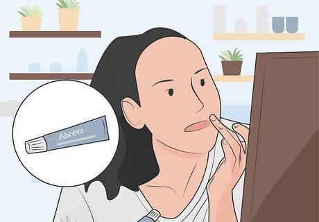Get rid of cold sores with antiviral cream every 3 to 4 hours. Docosanol (Abreva) can help heal cold sores faster than they would without treatment. Wash and dry your hands before applying a thin layer of docosanol cream to the entire area of the cold sore. Do this every 3 to 4 hours or about 5 times a day. Wash your hands again after applying it and resist the urge to touch the sore with your finger or tongue. If you experience hives, rashing, difficulty breathing, or swelling of the tongue, lips, and face, seek emergency medical care right away.Warning: Don’t ingest docosanol. If a pea-sized amount (or larger) gets in your mouth, remove as much of the cream as you can, rinse your mouth with water 2 or 3 times, and call your doctor.