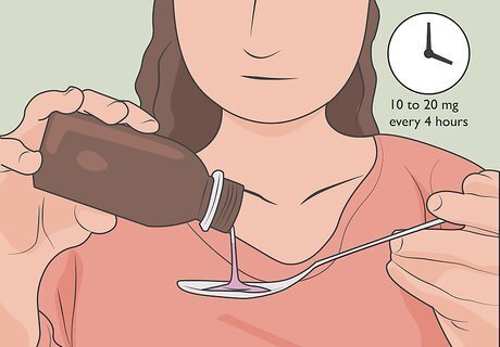 Quell a cough with dextromethorphan. Liquid cough medicines can help break up mucus and suppress the urge to cough. Brand names include Benylin, Delsy, Robitussin DM, Vicks 44, and others. For immediate-release formulas, take 10 to 20 mg every 4 hours or 30 mg every 6 to 8 hours. Extended-release formulas suggest you take 60 mg every 12 hours. Don’t take more than 120 mg within a 24-hour period. Pregnant or nursing women and children under 4 years of age shouldn’t take dextromethorphan. Talk to your doctor before taking dextromethorphan if you have diabetes, liver disease, asthma, emphysema, slows breathing, or chronic bronchitis. As an alternative, sucking on menthol lozenges will also help soothe the tickle in your throat that makes you cough. Be sure to purchase unsweetened varieties because sugars and menthol could increase the urge to cough.