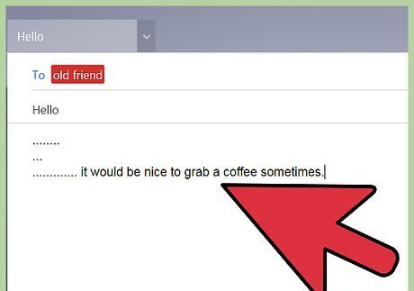 Send an email message. If you are messaging the person from Facebook, his or her email may be listed on the profile. Once the two of you have gotten reacquainted, it is appropriate to transition to other forms of communication like email. Send the person a note letting them know how pleased you are to get back in touch. You can use email to pursue other ways to connect like asking for the person’s phone number or scheduling a Skype or Hangouts session to chat face-to-face.