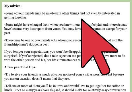 Arrange to meet up, if possible. One way to forge a deeper connection with an old pal is to schedule a time to meet in-person. Choose something low-key and casual like getting together over coffee or sharing breakfast or lunch. If meeting one-on-one makes you anxious, consider setting a date when you can meet up with a group. Reach out to several old friends at once who share a common background to reduce the pressure. This may be difficult if your friend has moved away. If this is the case, perhaps invite them to stay with you for a couple of days!