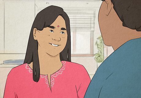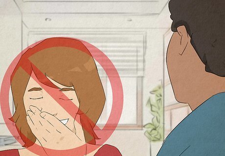 Look at them the same way you'd look at anyone else in a conversation. When someone stutters, well-meaning people often make a concerned expression or furrow their brow. This can make the person feel as though they're burdening you or that you're looking down on them. It can be tough to know if you're making "the face"—you might do it without realizing it, and that's okay! Just try to be aware of your expression as much as possible.