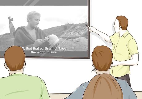 Take students to see a live performance of' Hamlet after reading it. If there is a theater in your area that will be performingHamlet around the time you will be teaching it, then you may want to arrange a field trip for your students to go see it. Plan to go to a performance after your students finish reading Hamlet”. Check with theaters in nearby cities to find a performance.Teach Hamlet Step 13.jpg If you take students to see a performance, you may want to connect it with an assignment, such as a paper on the experience of seeing a live performance of Hamlet.