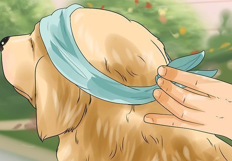 Tie a kerchief over the dog’s eyes. If you do not want to stick something sticky, loop a kerchief over the dog’s eyes and tie it beneath the dog’s jaw. Do not tie the kerchief too tight. Ensure you do not cover the dog’s nostrils. You should be able to fit your pinkie finger between the kerchief and the dog’s body. Instead of a kerchief, you could also use a loose elastic headband.