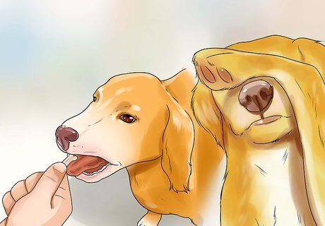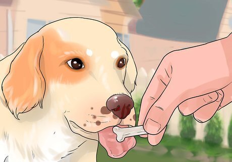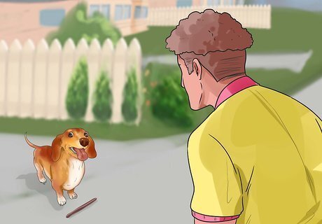 Reward the dog promptly. When training your dog, you must reward it immediately when it behaves in conformity with your wishes. When it plays shy, exclaim “Good boy/girl!” in an enthusiastic, friendly tone, and give it a doggie treat. Creating the association between playing shy with receiving a reward will encourage the dog to act obediently. Treats are a good reward, but need not be the only one. Dogs also respond positively to opportunities to play fetch, or go for a car ride or walk. Do not hold treats in your hand while training. The dog will learn that unless the treat bag is present, it need not comply with your commands.