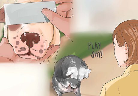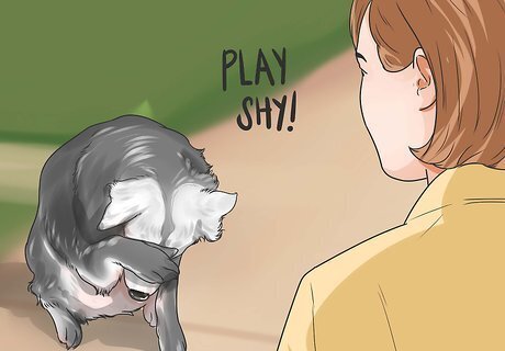 Be patient and set realistic expectations. Some dogs learn faster than others. Think about how quickly your dog was able to learn to sit, play dead, and roll over. Average those learning times to assess how long it might take for him or her to learn to play shy. Continue to train your dog to play shy and it will learn in time. Do not become frustrated or angry at your dog if he or she is not learning at the pace you desire. Take notes at the end of each session and look for small signs of improvement over the long term. Always maintain a positive attitude and celebrate your dog’s progress. Relax and take a few deep breaths if you feel you are becoming frustrated or disappointed in your dog’s progress. If either you or your dog are growing weary of the training exercise, end it and try again later.