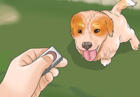 Obtain a clicker and use it to train your dog. A clicker is a small noise-making device which emits a sharp cracking sound when squeezed. These are available at your local pet store or online. When your dog performs a positive action, you should squeeze the clicker, then immediately administer a dog treat and/or fulsome praise. It’s alright if teaching your dog to play shy is the first trick it will learn with the clicker. However, if he or she has been trained with the clicker before in more basic tricks such as sit, play dead, or lie down, your dog will learn to play shy through clicker training much faster.
