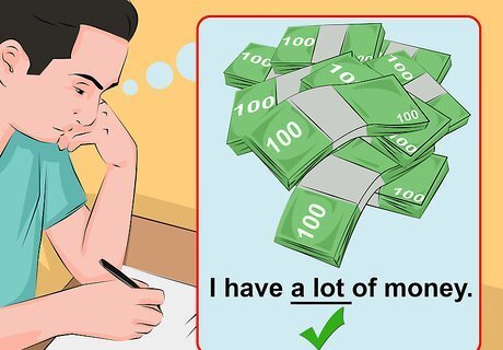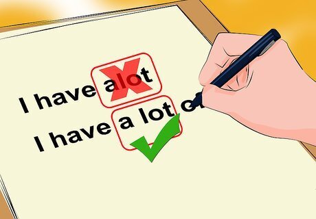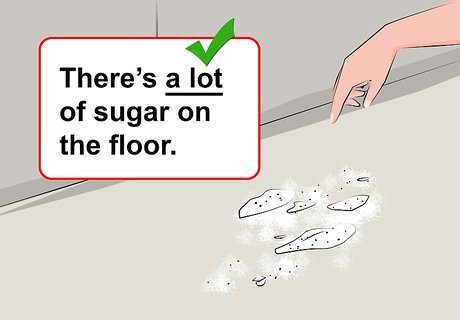 Understand that "a lot" is often considered slang. "A lot" is often used in informal conversation to describe the quantity of something, but it is usually considered too colloquial for use in formal prose. Some people prefer to use a lot to describe quantities for collective nouns, or things that cannot be counted individually, such as sugar or water. For example: "There was a lot of sugar on the floor." It may be preferable to use other words, such as "several," "many," or "a great deal of" when referring to count nouns (things that can be counted individually).