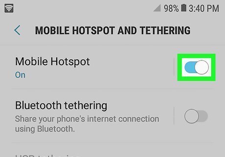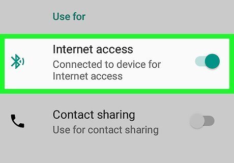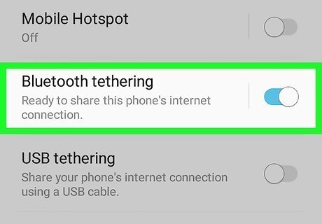 Set up your other device's Bluetooth network. To do so: Android - Open Settings, tap Wi-Fi, tap your Android's name, then tap the Internet Access box. Windows - Open the Wi-Fi menu, right-click the Android's name, select Connect using, and click Access Point. Mac - Open the Wi-Fi menu, click the phone's name, click the settings gear at the bottom of the window, and click Connect to Network. On iPhone, the connection should automatically be enabled as long as Wi-Fi is turned off or otherwise unavailable.