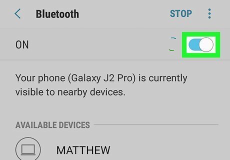 Slide Bluetooth right to the "On" position. This switch should turn green, signifying that your Android's Bluetooth is now active. You'll also see the Bluetooth symbol appear in the top-right side of the screen. If the switch here is green, Bluetooth is already enabled.