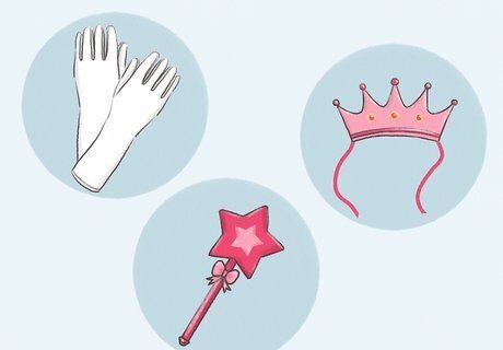 Offer plenty of dress-up options. Buy costume pieces that the children can wear during the party, like feather boas, tiaras, fancy gloves, hats with fascinators, or fairy wings. You can stick to the theme or just be silly with it. You can buy cheap strands of beads at a dollar store and use them as costume jewelry or decorate the table with them. You could include a couple items at each place setting so children know to put them on when they sit down. Or keep them in a box near the door and have each child pick one as they arrive.