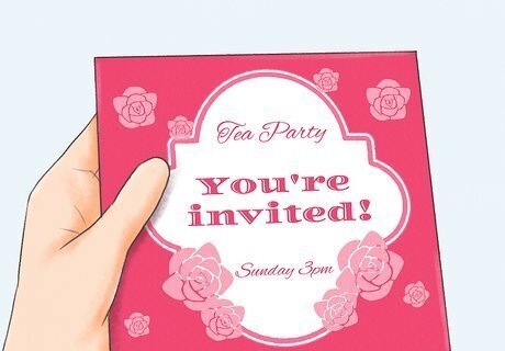 Make the invitations. For children, the cuter and more colorful, the better. Make your invitations to match the theme. For example, if you’re modeling your party after the tea party in Alice in Wonderland, you could cut your invitations in the shape of the Mad Hatter’s hat. For a princess party, use an old-looking font and language like “Hear ye! Hear ye!” Include a note encouraging children to dress up to match the theme, or just wear their fanciest clothes.