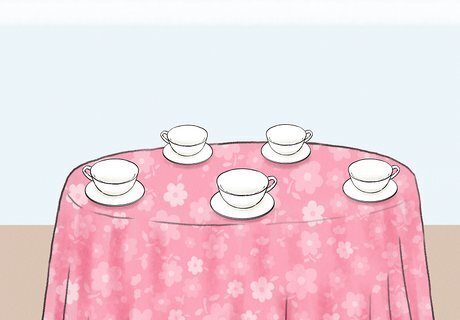 Dress up the table. Put a nice tablecloth over the table you’ll be using to serve the tea. Find fun and frilly cake stands or three-tiered dessert stands to display the food on. Give each place setting its own teacup, saucer, cloth napkin, and silver spoon. If you’re concerned about small children breaking nice china, either purchase these items from a thrift store or find plastic teacups.