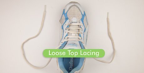 Lace the bottom two eyelets above your big toe. Instead of lacing across the bottom of the shoe, pull one side of the lace down through the eyelet above your big toe. Pull it 4 to 5 inches (10 to 13 cm) through. Then, insert the other tip of the lace through the next eyelet up on the same side. Pull it tight. Both laces should be hanging out of the inside part of your shoe.
