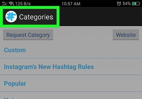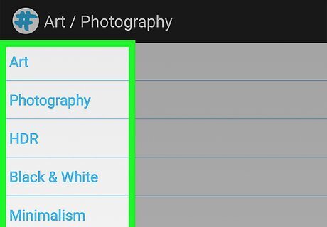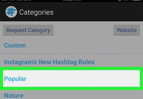 Tap a subcategory. A block of hashtags related to the subcategory will appear.