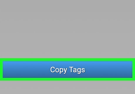 Tap Copy Tags. Doing so puts them in you device's clipboard, so you can paste them into Instagram. To back out of a category or subcategory, tap the Back arrow in the upper-left corner.