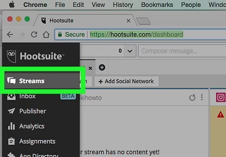 Click on +. Click the + that appears next to the hashtag you want to track. A box will appear with all the Instagram posts containing your hashtag. This is a "stream" and it will follow your hashtag, updating with new posts, until you delete it. Add a new stream for every hashtag you want to track. Do so by clicking on + Add Stream in the upper-left of the window. To delete a stream, click on ⋮ in the upper-right corner of the stream's window, then click on Delete Stream.