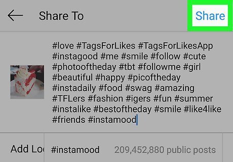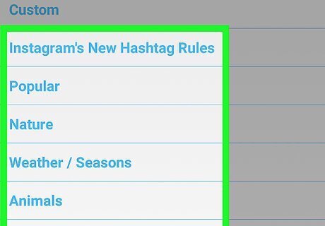 Select hashtags. Tap one or several hashtags that you'd like to add to an Instagram picture.