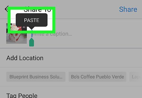 Release and tap Paste. Doing so places the selected hashtags into your Instagram caption. Add to your caption to make it more descriptive.