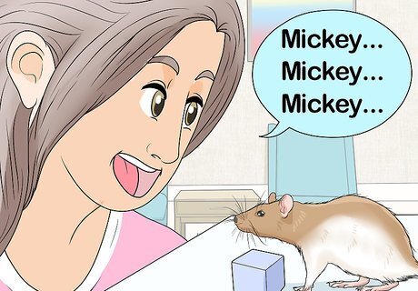 Call your rat back to you. When your rat gets the hang of picking up objects, try to get it to return to you. Before your rat can run off to its cage with the object or drop it somewhere, get its attention by saying its name or making some other sound. If your rat doesn't respond to you, try keeping a treat in your hand and flash it. If you show the rat that you have something, it will be more enticed to return to you. Your rat simply may not want to play. Give it a break and return to the training after some time has passed. Forcing it to train will just make your rat more stubborn, so take it easy for a bit.