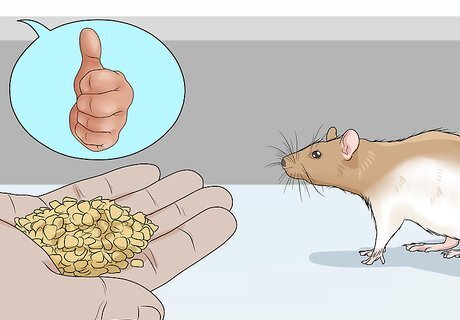 Reward your rat with praise or treats. Tell it it's doing a good job in a clear, happy voice. Once your rat gets the hang of picking up thing, start showing them you have a treat in your hand before they run too far away. This will make them want to come back to you while they still have the object. Rats enjoy variety, so try different treats to switch things up! If your rat doesn't do what you want it to, cut the rewards. Instead of praise, speak in a disappointed tone and try withholding treats. Most rats love green peas as treats. Other breeds, like roof rats, really love almonds.