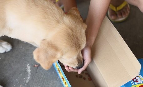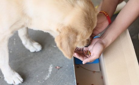 Reward at Source. Once your dog finds the correct box, reward with more food. Feed right next to 'source', where the odor/food is.