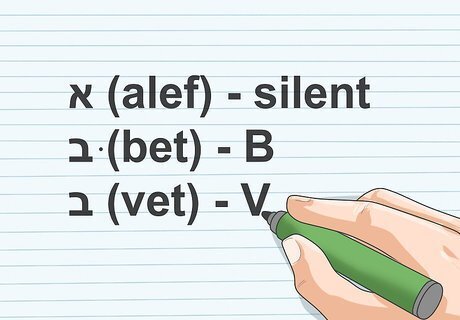 Understand the concept of 'silent letters' in Hebrew. The Hebrew language has two letters that are always silent: א and ע. The letters ה and י are also sometimes used as silents. If a silent letter appears with a vowel, it is pronounced plainly as that vowel with no consonant sound. If a silent letter appears with no vowel, it is not pronounced.