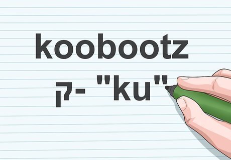 Understand how to read Hebrew consonants together with vowels. In the Hebrew language, most vowel symbols are placed directly below the consonant. When such a combination occurs, first the consonant sound is pronounced, then the vowel. For example, when you see a קֻ, first pronounce the K sound of the ק, then pronounce the u sound of the koobootz. The full sound is "ku."