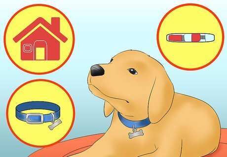 Consider leaving your dog at home. In some cases, it may be easier to simply leave your pet at home. This may be true if your dog has particularly severe anxiety or if you do not have adequate time to train and desensitize your dog to car travel. If you plan on being gone for longer than your dog is normally left alone (like typical work hours), make sure your dog has a sitter to feed, walk, and comfort your pet. You can have a friend or relative come care for your dog at your home, or you can drop your dog off at a friend/relative's house. You can also drop your dog off at doggie day care or hire a dog walker to come to your home. Ask to see the credentials of anyone you hire to care for your dog. If you're using a kennel or daycare service, make sure you go in person to inspect the facility ahead of time. Make sure your dog has a microchip and an up-to-date ID tag on its collar before leaving your pet in anyone else's care. That way, if your dog runs away, it will be easier to track it down and bring it home safely.