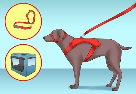 Try using a restraining device. If your dog paces in the vehicle or tries to climb up to the front seat, you may need a restraining device. These devices can help keep your dog safe and secure during travel. Some common restraining devices include: a harness a head halter a portable carrier or crate