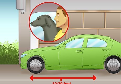 Begin moving the car. A moving vehicle can easily scare an unaccustomed dog. Your dog should be comfortable being in a vehicle with the engine running by this point. Do not attempt to put your dog into a moving vehicle without proper acclimation. Don't actually go for a drive yet. Simply shift gears between "drive" and "reverse," pulling your car in and out of the garage or up and down the driveway. If you do not have a garage or driveway, try simply pulling forward about 10 to 20 feet on a quiet side street, then putting the vehicle into reverse and backing up that same distance.