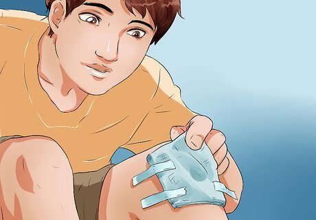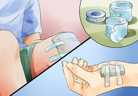Bandage the wound. If the wound is a small scrape, leave it open to the air. If the wound is deeper, cover it with a sterile gauze. A nonstick bandage held in place with medical tape is the best option for larger wounds, though large band-aids may also work. Be sure that you do not put the adhesive area of a bandage over a wound, as it may re-open the wound when you remove it. Change the gauze once a day if it is dirty. A good time to change the gauze is when you take a shower.
