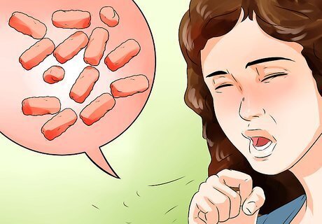 Cover coughs and sneezes. Help others stay well when you are sick by covering your mouth and nose when you cough or sneeze. This will help keep your germs reigned in, not allowing them to fly across the room. Wash your hands after coughing or sneezing into your hands before touching another person or common surfaces such as door knobs or light switches. You can also cover your mouth or nose with the crook of your arm (the inside of your elbow). This can help limit the spread of germs without causing you to need to wash your hands every 2 minutes while you are sick.