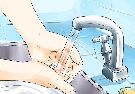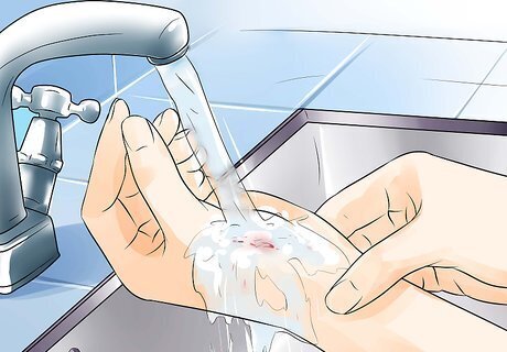 Wash your hands before treating a wound. If you treat a wound with dirty hands, you will increase the chances of a bacterial infection. Wash your hands with warm water and antibacterial soap for 20 seconds and dry them well. Wear clean vinyl or latex gloves if they are available. Avoid latex gloves if you have a latex allergy.