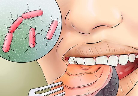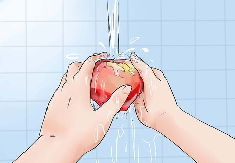 Wash your food well. Wash raw fruits and vegetables before you eat them. Even organic foods need to be washed.Use an antibacterial cleaner on surfaces that come into contact with raw food to kill potentially hazardous bacteria. Use a different cutting board for each type of food. Use different cutting boards for fruits and veggies and raw meats to avoid cross-contamination.