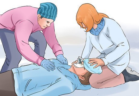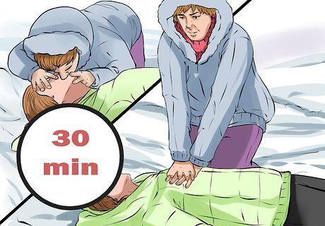 Continue administering CPR for at least 30 minutes. If the patient has no pulse and/or is not breathing, start CPR right away. Spend a lot longer than traditional cardiopulmonary resuscitation would suggest because the victim is likely suffering from hypothermia. The old adage, “A patient isn’t dead until he’s warm and dead” applies here, to an extent. If a victim was buried for longer than 35 minutes, their chance of survival is low even with CPR. If they were dug out early enough, however, providing CPR for as long as possible, at least 30 minutes, can save a life. CPR can be tiring, especially in severe climates. If you have a companion, switch off doing high-quality CPR every 2 minutes.