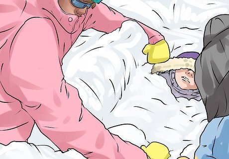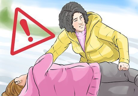 Dig the victim out to prevent suffocation. A person buried with their head under the snow can asphyxiate. Deal with the immediate risk of suffocation by starting to dig to the person as soon as possible. Once their head is uncovered, the risk of suffocation is no longer your greatest concern. Do NOT try to pull the victim out – they may have serious injuries that can be worsened by moving them. It’s best to leave them as is until help arrives, unless they are unconscious. If they are unconscious, try to dig around them as quickly as possible so you can gently lie them flat. People uncovered within the first 10-18 minutes have around an 80% chance of survival, unless death is caused by traumatic injuries. After 35 minutes of burial, likelihood of survival decreases significantly.
