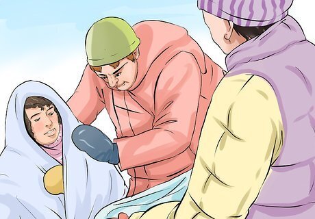 Prevent post-rescue collapse by handling the victim gently. Post-rescue collapse can occur if you successfully rescue a patient with hypothermia but then they suffer a life-threatening issue once they start to re-warm. Do what you can to prevent post-rescue collapse by handling the victim in the following ways during your rescue attempt: Handle the victim as gently as possible and keep jostling them to a minimum. Avoid unnecessary movement of their trunk and large joints like hips, knees, and shoulders. When the heart gets very cold, rough handling can induce a deadly arrhythmia. Keep hypothermic patients horizontal. Standing them upright can cause a serious drop in blood pressure. Remove the victim’s wet clothes and wrap them in a water-resistant and windproof outer shell that has heating pads, when possible. Administer oxygen if you have it available, or as soon as possible.