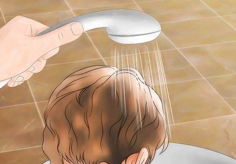 Let the shampoo sit for five minutes. The shampoo needs a few minutes to work. Read the label of the shampoo to see how long it should sit. In most cases, it will be around five minutes. Make sure that your child’s scalp is completely covered with the shampoo as it sits. Rinse out the shampoo after five minutes. Try to avoid getting the shampoo in their eyes. If your child complains that their scalp burns or stings, wash out the shampoo immediately, and try using a different type of shampoo.