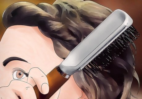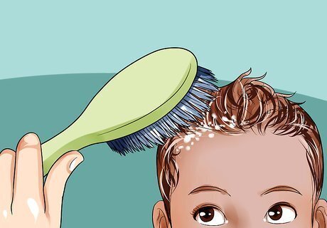 Brush their hair before you shampoo it. Gently brushing their hair will loosen some of the flakes. This will help you wash the dandruff away more easily. You can use a brush or a comb.