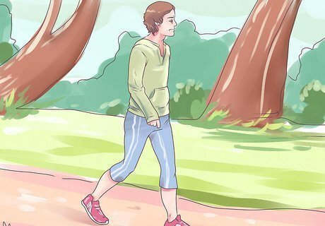 Engage in frequent low-impact aerobic exercise. You may think that you should avoid exercise to limit the stress and strain on your joints. However, regular aerobic exercise strengthens your bones and is essential to your overall health. Work with your doctor and/or physical therapist to determine the best low-impact exercises for your condition. In general, you should aim for 150 minutes of moderate intensity aerobic exercise per week. “Moderate intensity” means your heart rate is elevated and you’re breathing hard enough that it’s tough to carry on a conversation. Based on your condition, though, your doctor may have alternative recommendations. Walking is often a great low-impact aerobic exercise. Jogging, however, may cause too much strain on your joints. If walking also causes joint pain, try alternatives like swimming, biking, or water aerobics.
