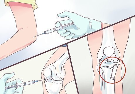 Consider injections or surgery if other methods aren’t effective enough. If the pain is unrelenting, and combining medication with physical and occupational therapy doesn't seem to be helping, your doctor may advise the use of more invasive treatments. Before choosing one or more, take the time to talk about the potential risks and benefits carefully with your doctor. Common options include: Cortisone shots. This procedure is used to relieve pain in the joint. It begins with the application of local anesthesia to numb the area. A needle is then inserted into the joint spaces and the drug is injected. Lubrication injections. These injections provide cushioning around the affected joints with a lubricant that approximates the function of natural joint fluid. Bone realignment. This is an invasive procedure technically called osteotomy. It is performed by cutting across the joint to realign the bones. It can, for instance, lessen knee pain by reducing your body weight on the damaged joint. Joint replacement. Arthroplasty is done by removing damaged joint surfaces and replacing them with plastic or metal prostheses.