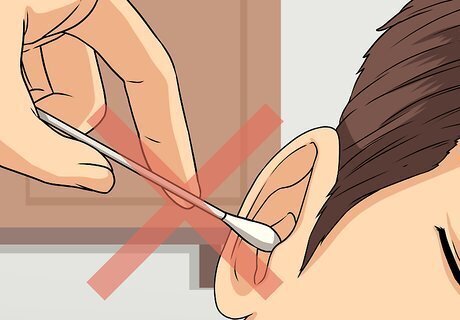 Don’t stick anything inside of your ears. Try not to stick cotton swabs or any other sharp or blunt object in your ear, as these will hurt and damage your ear more. If you think you’re suffering from an ear infection or another condition like swimmer’s ear, ask a doctor or ear specialist for help. If you stick a cotton swab in your ear, you’ll be doing more harm than good.