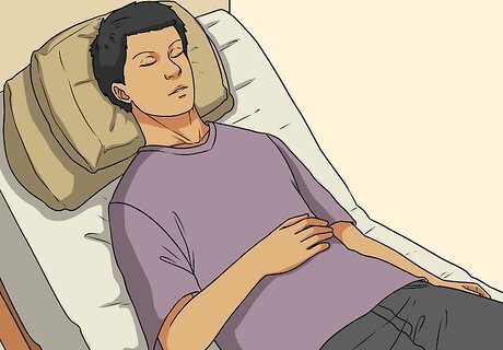Sleep with your head propped up to get rid of the pain. Stack a pillow or 2 on your bed before you go to sleep. If your earache is caused by an infection, sleeping on an angle may help drain the extra fluid that’s in your ear. If you want to take a nap, consider taking a snooze in a recliner or reclining armchair.